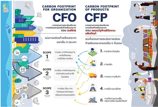 2. คาร์บอนฟุตพริ้นท์ผลิตภัณฑ์ (CFP) หมายถึง ปริมาณก๊าซ เรือนกระจกที่ปล่อยออกมาจากผลิตภัณฑ์แต่ละหน่วย ตลอดวัฏจักรชีวิต ของผลิตภัณฑ์ ตั้งแต่วัตถุดิบ การผลิต การจัดจำหน่าย การขนส่ง ไปจนถึง การใช้งานและจัดการของเสีย
