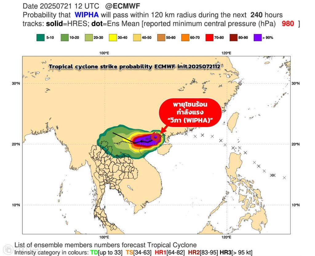กรมอุตุนิยมวิทยา อัพเดตพายุโซนร้อนกำลังแรง “วิภา (WIPHA)” เช้าวันนี้ (22/7/68)ว่า เมื่อ เวลา 04.00 น.มีศูนย์กลางอยู่ห่างประมาณ 50 กิโลเมตร ทางตะวันออกของเมืองท้ายบิ่ญ ประเทศเวียดนาม กำลังเคลื่อนตัวทางทิศตะวันตกค่อนทางใต้เล็กน้อย ด้วยความเร็วประมาณ 15 กิโลเมตรต่อชั่วโมง